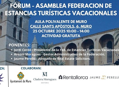 El próximo 25 de octubre desde las 10 de la mañana y hasta las 14 horas se celebrará en Muro el Fórum/Asamblea de la Federación de Estancias Turísticas Vacacionales de Baleares