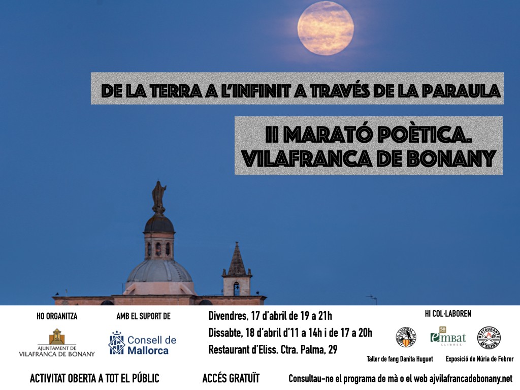 - Viernes día 24 de abril de 2026 a las 18:30 horas en la Iglesia del Carmen de Porto Cristo. Presentación del libro “UNA PASSIÓ CONFIDENCIAL”, versos del poeta Bernat Nadal. Y el 2 de mayo en Manacor